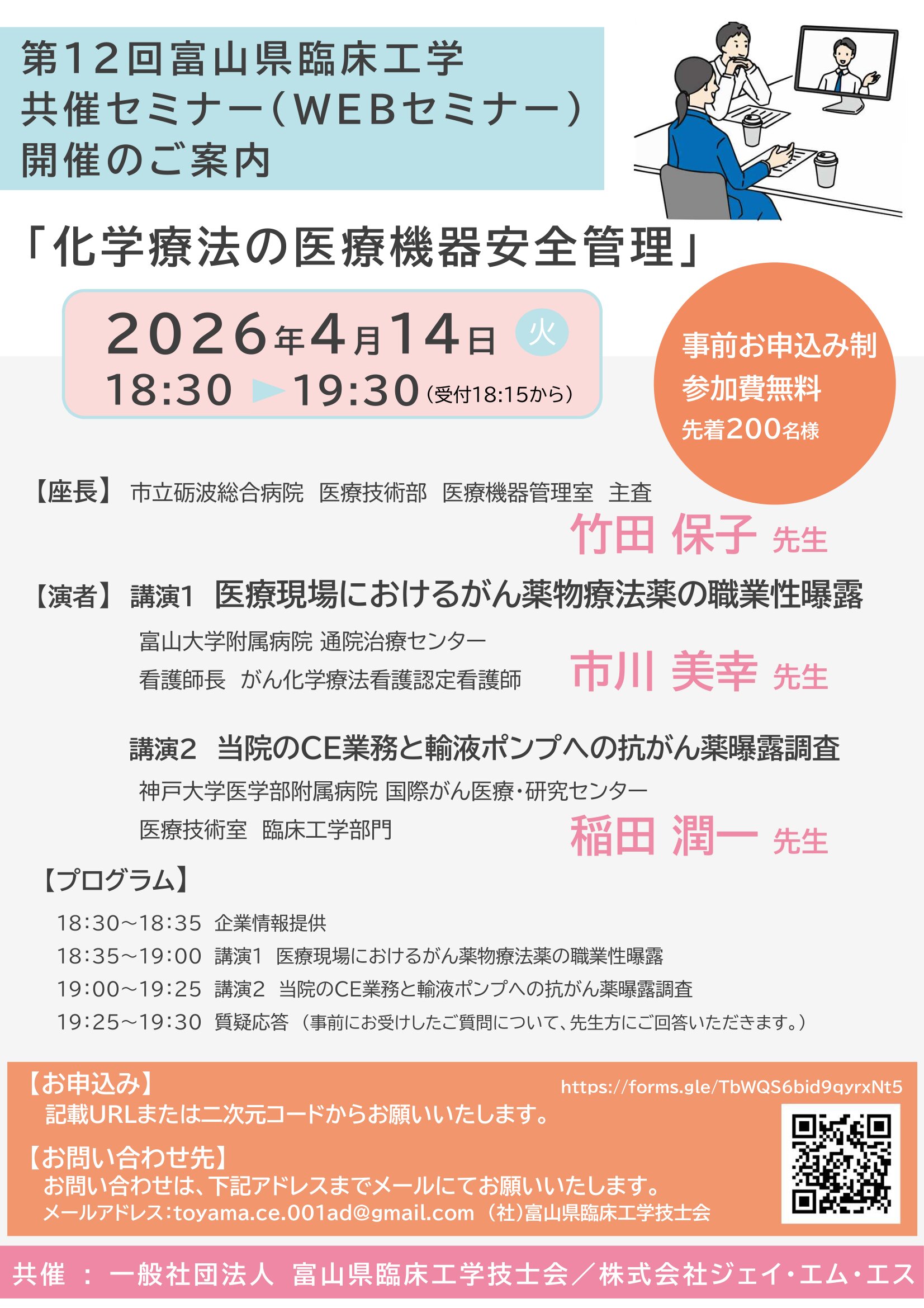 第12回 富山県臨床工学共催セミナー 開催のお知らせ