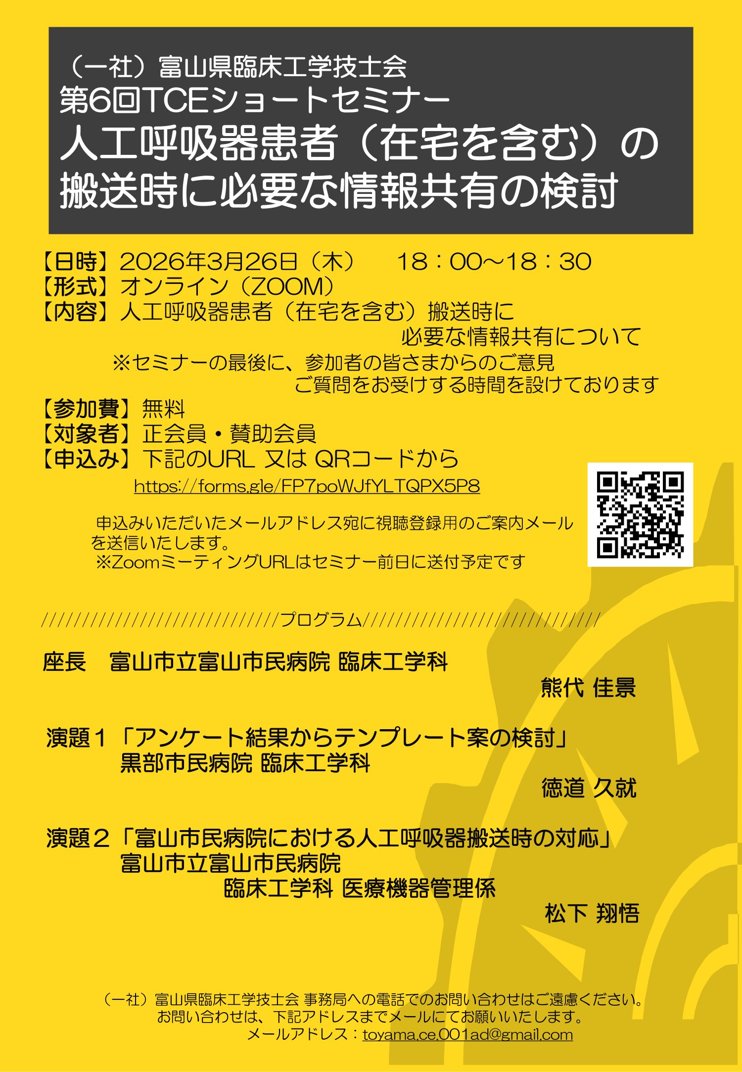 [参加費]:当会および日本臨床工学技士会会員 1,000 円