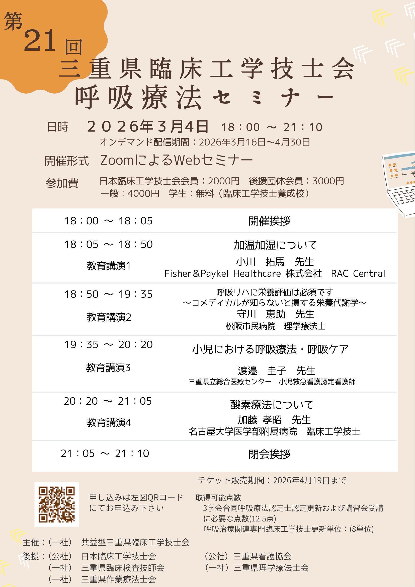 第21回三重県臨床工学技士会呼吸療法セミナー 開催に関するお知らせ