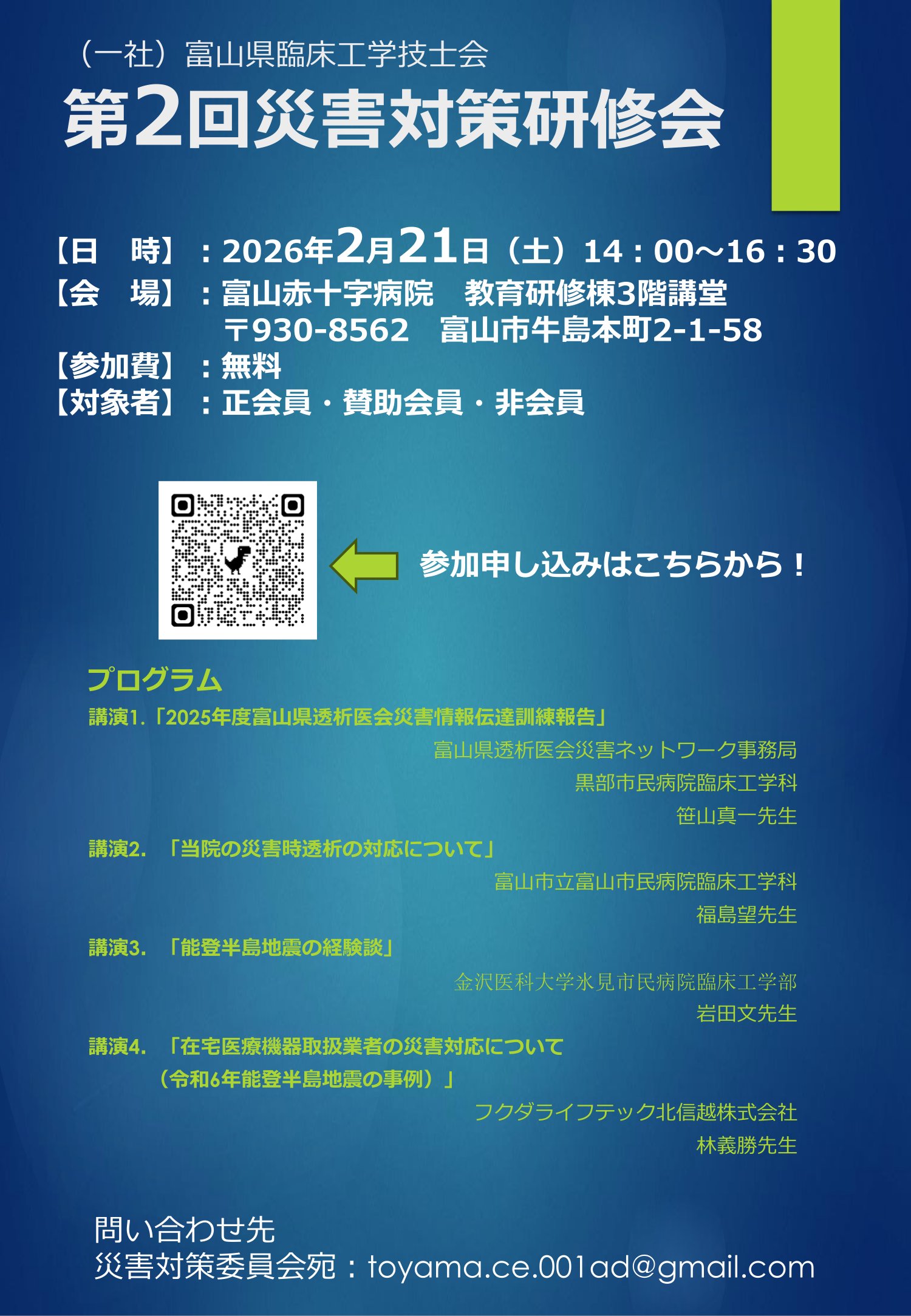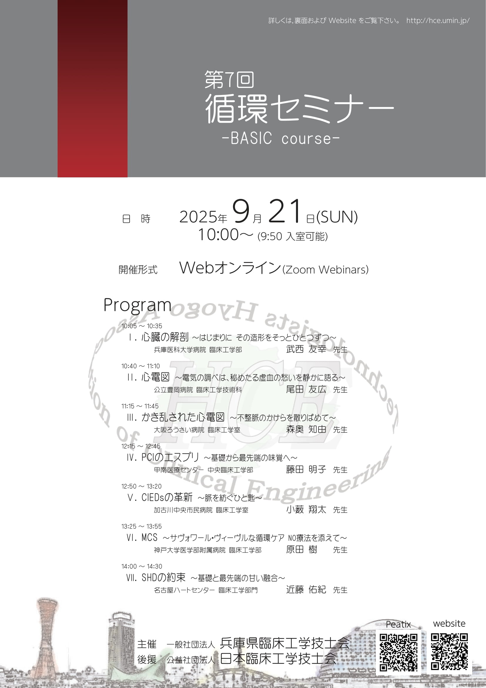 [受講料]:兵庫県臨床工学技士会正会員・学生 1,000 円 / 一般 4,000 円