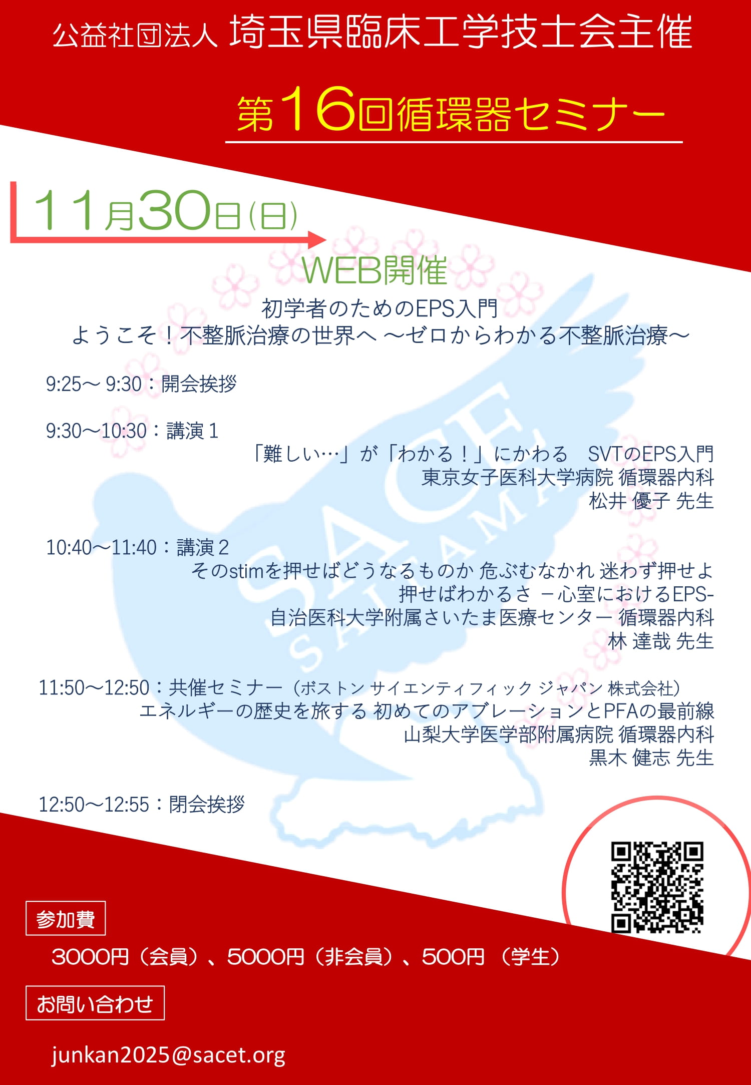 [参加費]:会員2,000円(日本臨床工学技士会) 非会員3,000円 学生500円