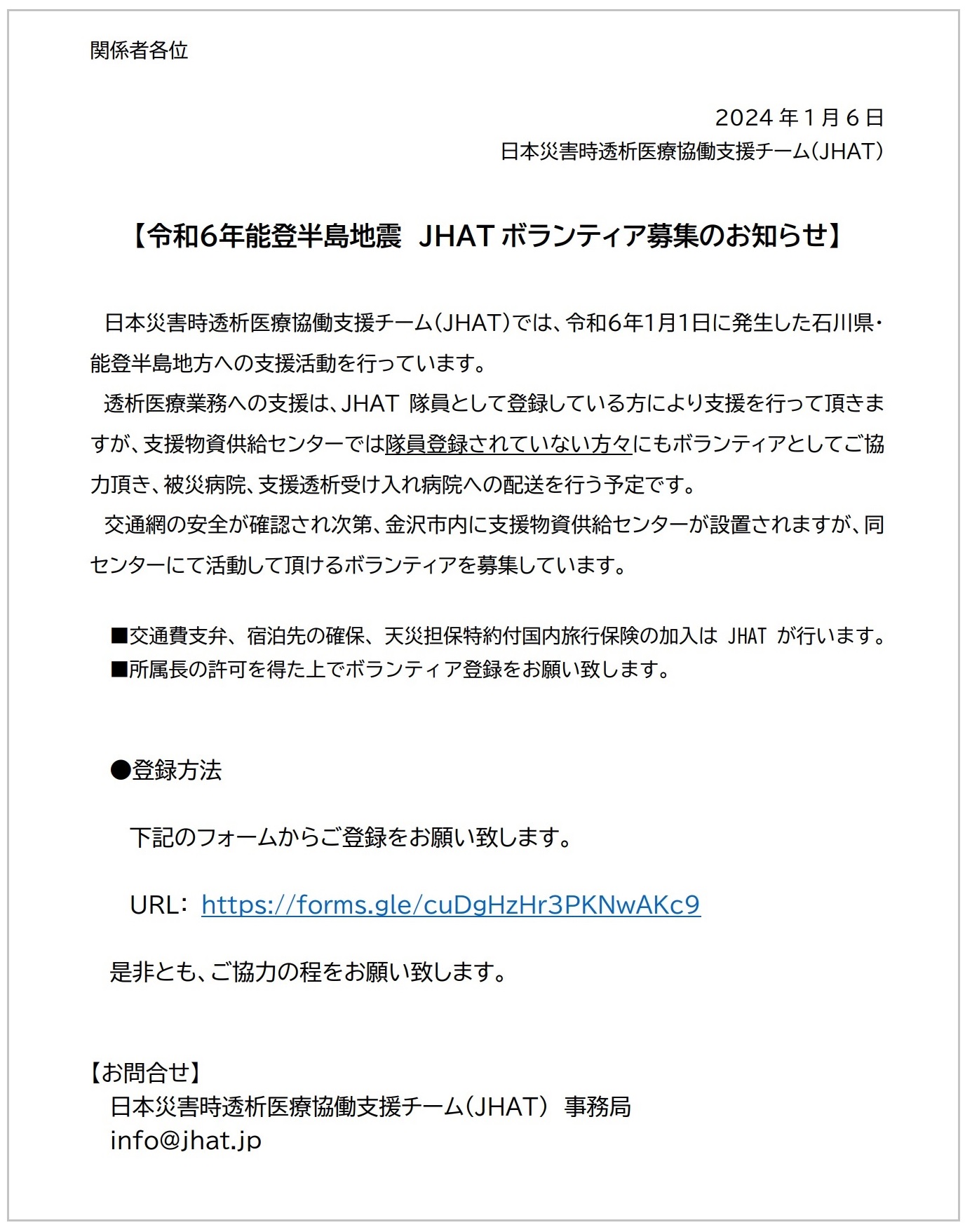 | 12日 | (Tu) | NPO法人富山県腎友会 より | 事務局ニュース(No.316 3/1/24)届く |
