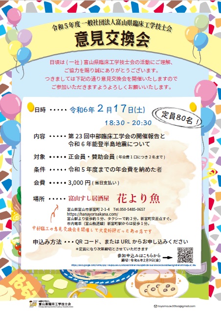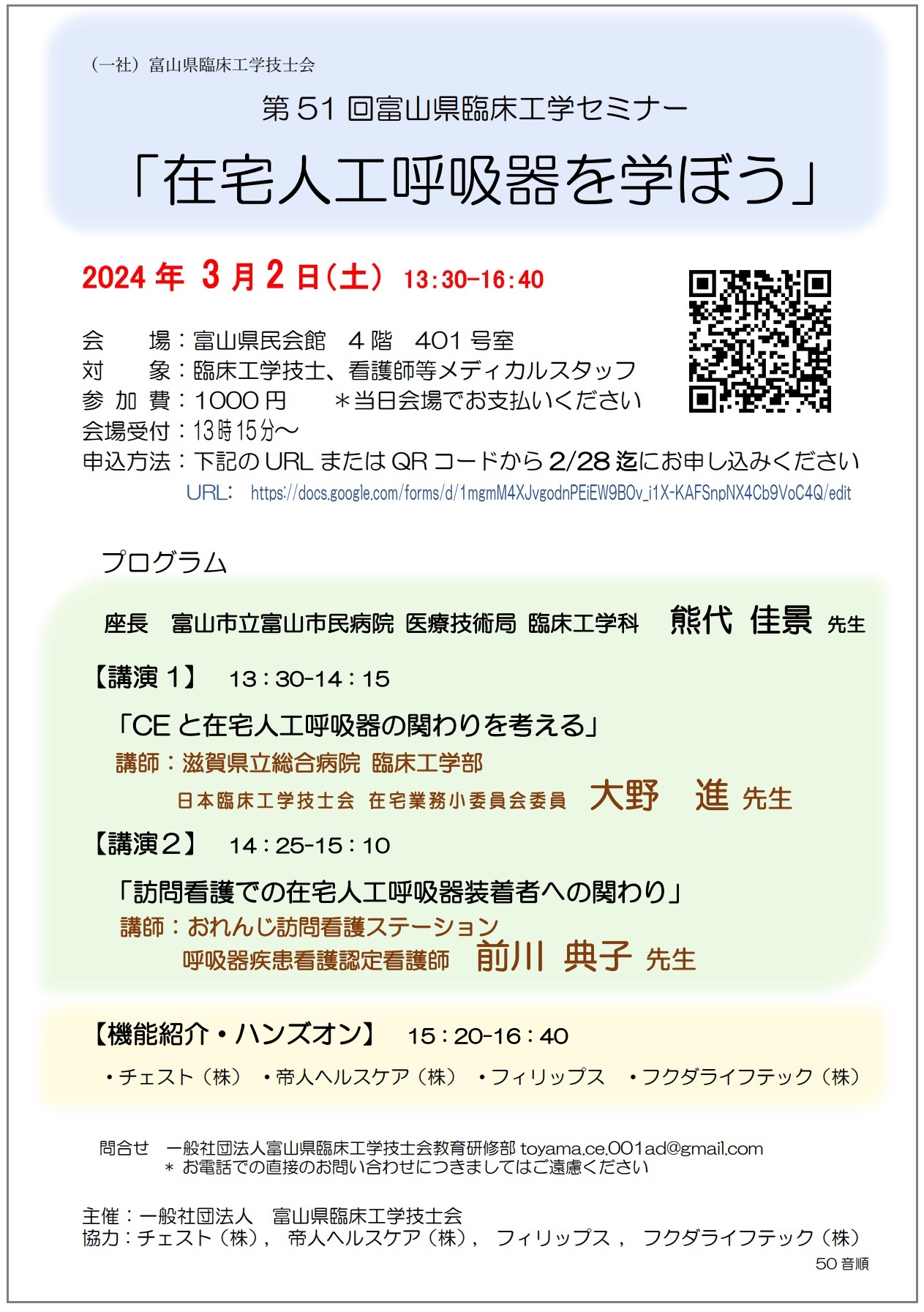 [主 催]:中部臨床工学技士会連絡協議会、一般社団法人 富山県臨床工学技士会