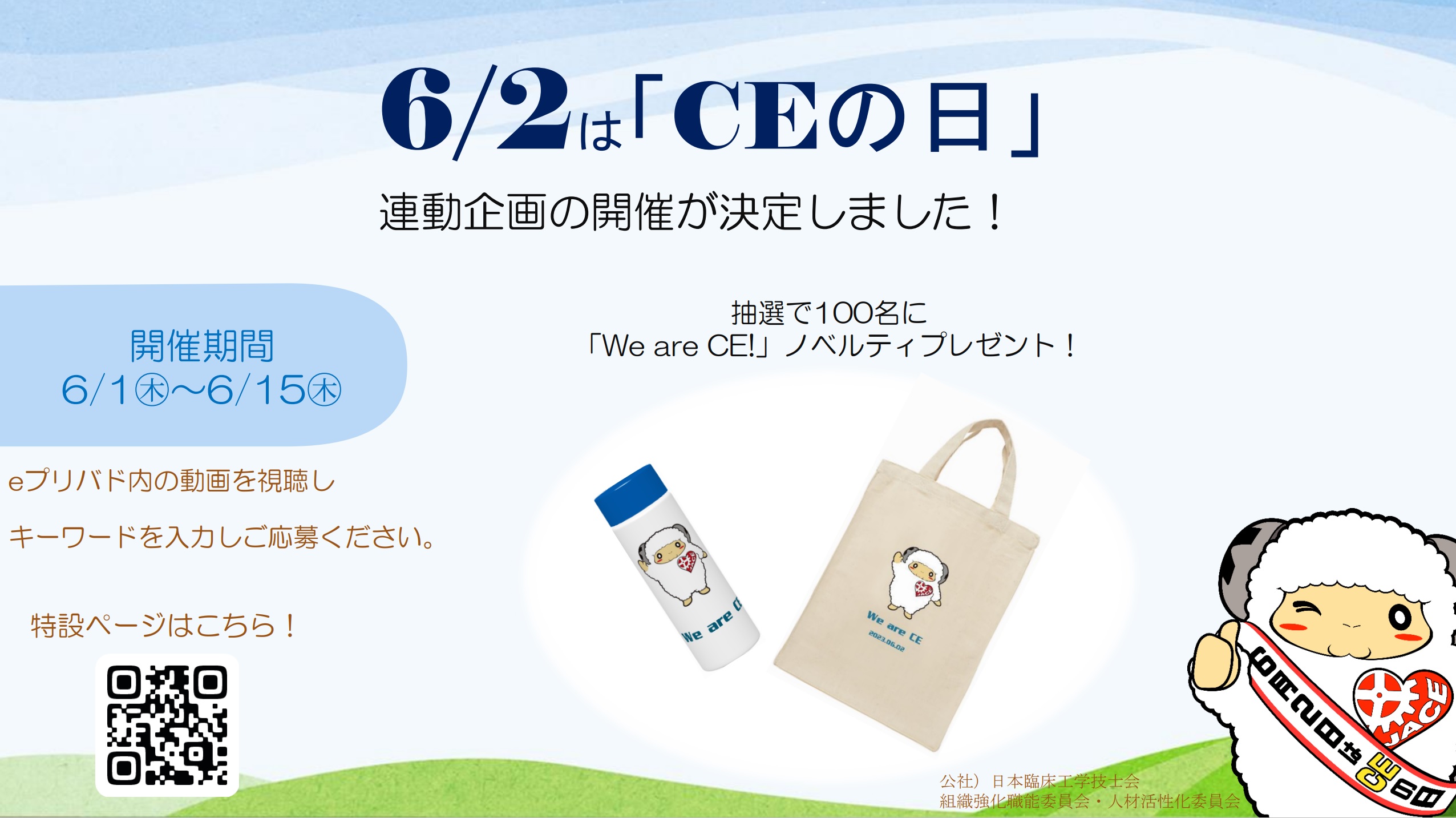 | 7日 | (W) | (一社)富山県臨床工学技士会 | CE通称統一啓発”「CEの日」連動企画” 掲示のお知らせ |