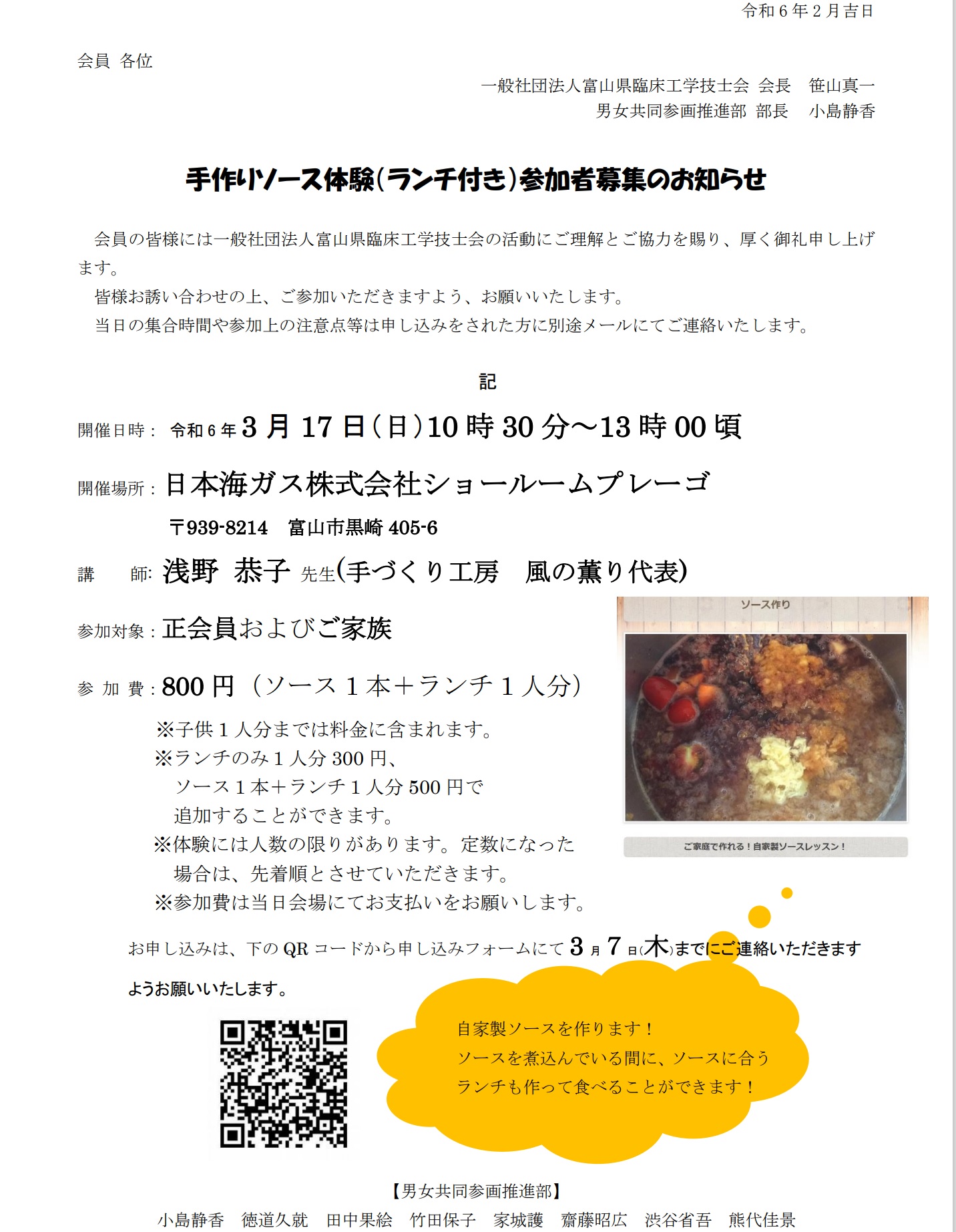| 15日 | (M) | (一社)富山県臨床工学技士会 | 令和5年度 定時総会 会告案内 令和5年度 定時総会 議案書・委任状(ハガキ) 令和5年度 年会費納入のお願い 令和5年度 年会費振込用紙 第13回 学術大会プログラム ... 発送 |