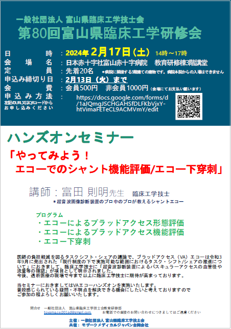 | 17日 | (Sat) | (一社)富山県臨床工学技士会 | 第80回 富山県臨床工学研修会 開催 |