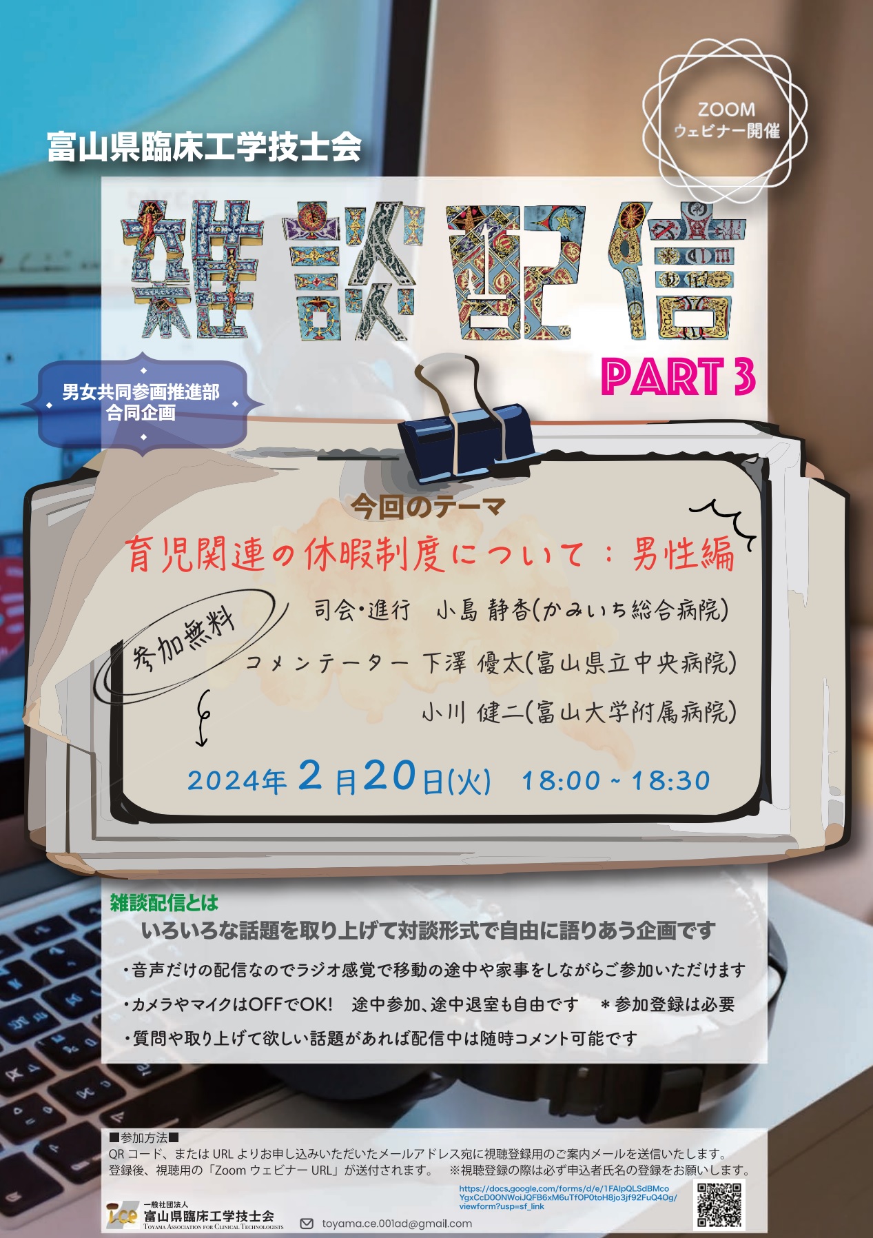 | 20日 | (Tu) | (一社)富山県臨床工学技士会 | 第3回 雑談配信 開催 |