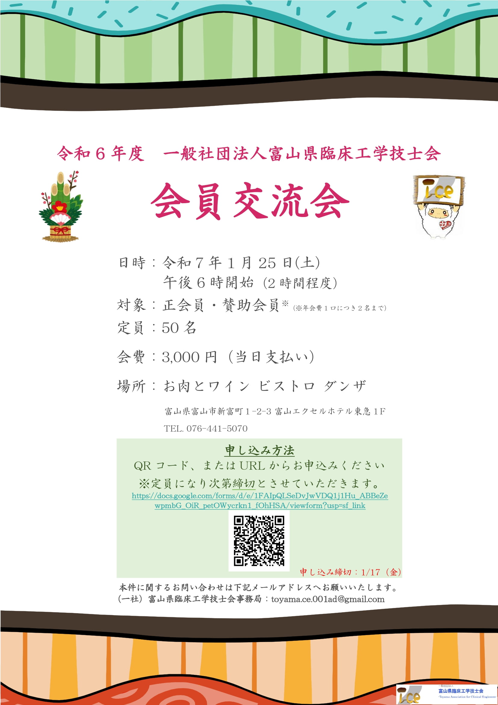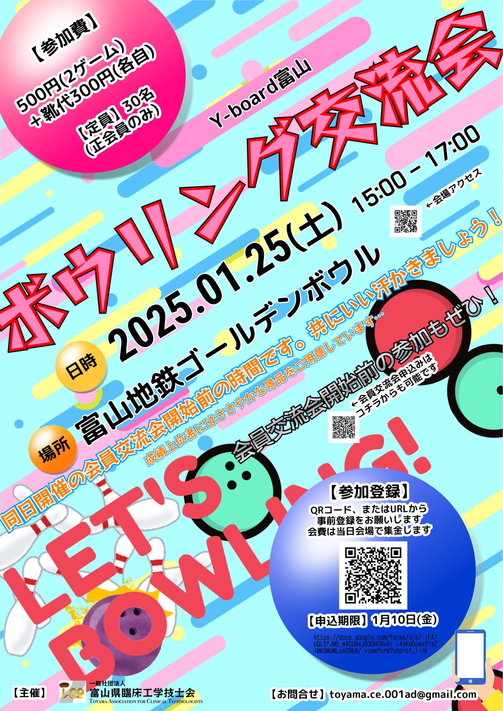 | 25日 | (Sat) | (一社)富山県臨床工学技士会 | 令和6年度 会員交流会 Y-Board ボウリング交流会 開催 |