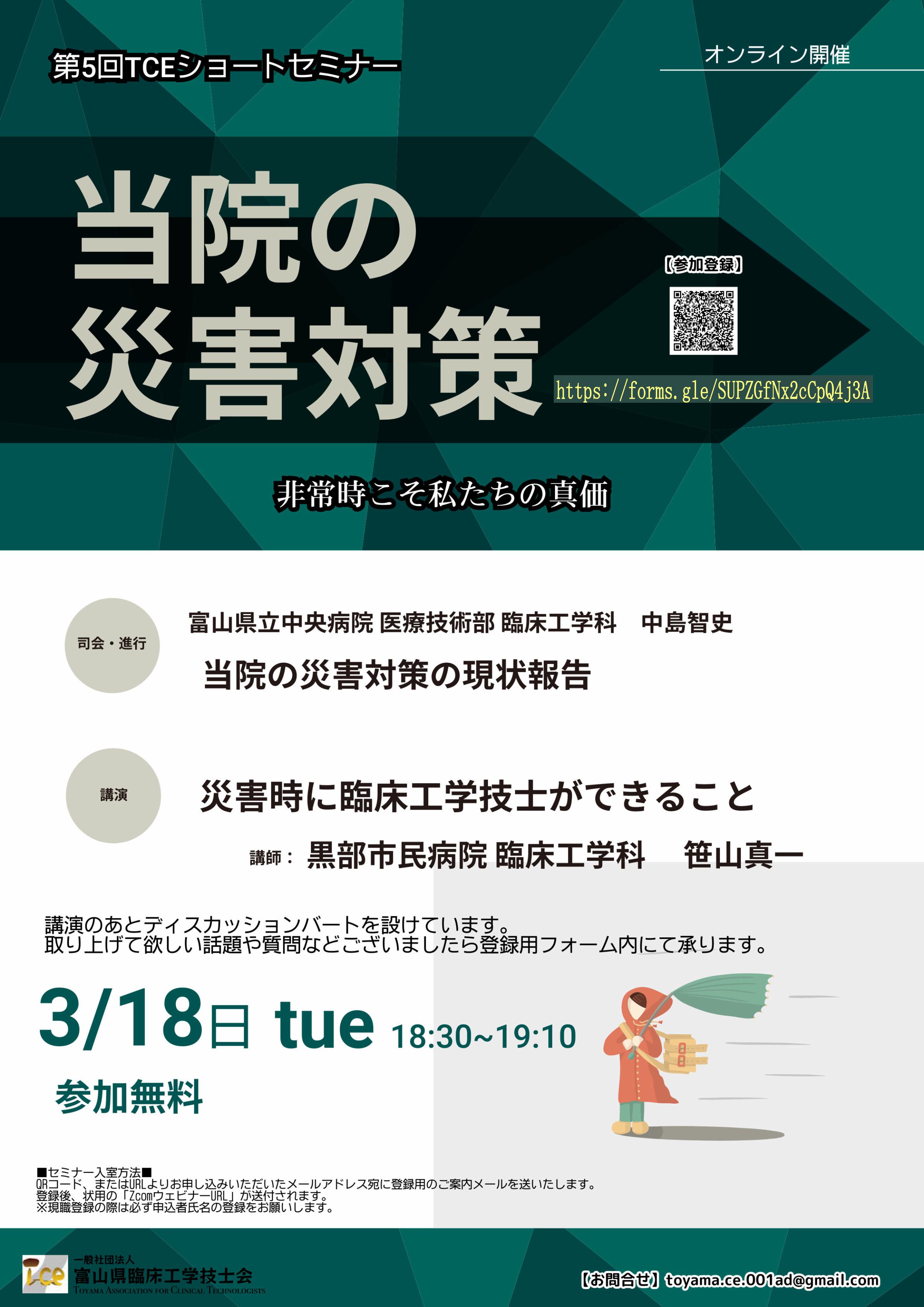 | 18日 | (Tu) | (一社)富山県臨床工学技士会 | 第5回 TCEショートセミナー 開催 |