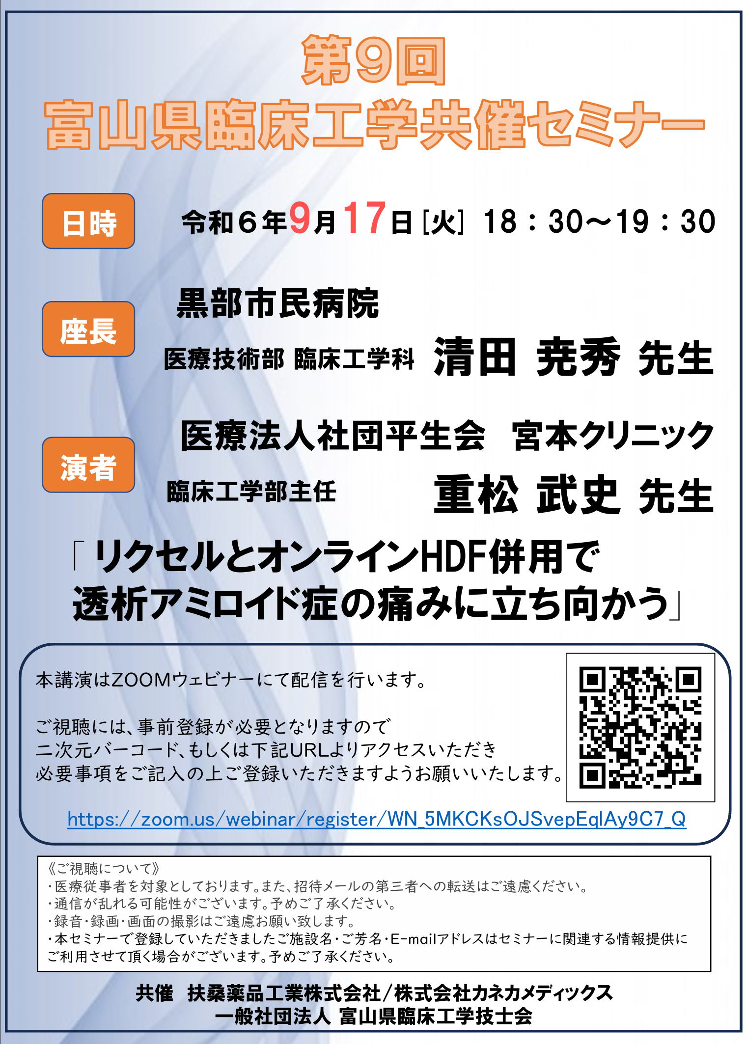 | 17日 | (Tu) | (一社)富山県臨床工学技士会 | 第9回富山県臨床工学共催セミナー 開催 |