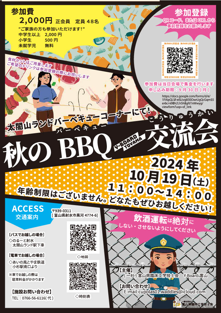 | 19日 | (Sat) | (一社)富山県臨床工学技士会 | Y-Board BBQ交流会 開催 |